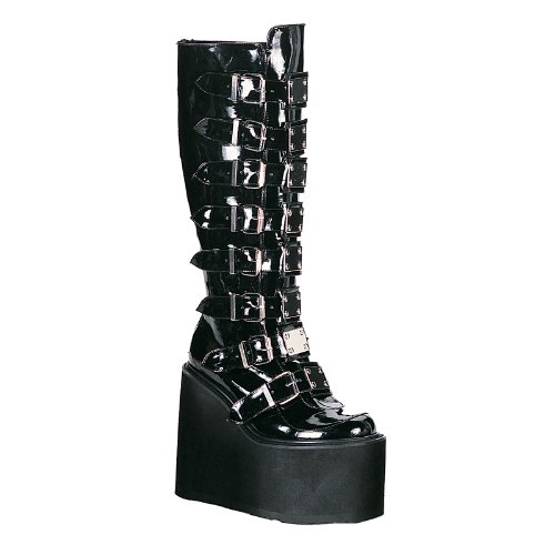 ^^ 5 1/2 Inch Trendy Knee High Boots Gothic Boots Black Platform Boots Metal Plates Patent Size: 6